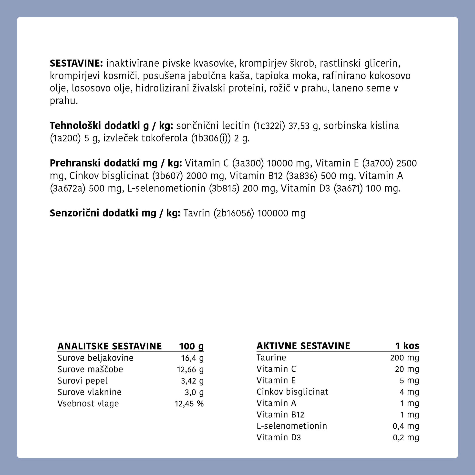 Nutritional additives mg/kg: Vitamin C (3a300) 10000 mg, Vitamin E (3a700) 2500 mg, Zinc bisglycinate (3b607) 2000 mg, Vitamin B12 (3a836) 500 mg, Vitamin A (3a672a) 500 mg, L-selenomethionine (3b815) 200 mg, Vitamin D3 (3a671) 100 mg.