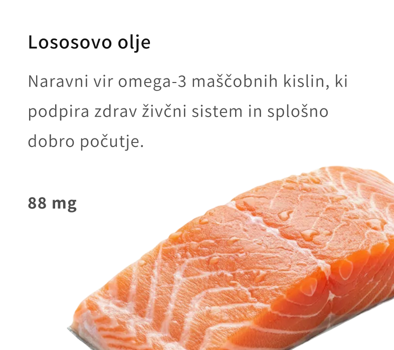 Naravna kombinacija aktivnih sestavin: vsebuje lososovo olje, Vitamin C in Vitamin E.